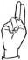 На ћирилици написано ВАЛЕНТИНА СЕЛАКОВ састоји се из 16 слова [?]. Исписано ћириличном једноручном азбуком за глувонеме: